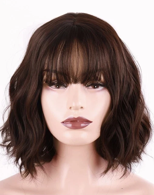 Perruque Synthetique Ondule Frange Brun Chatain Cheveux Court Boucle Neuf Bonnet Eur 36 90 Picclick Fr